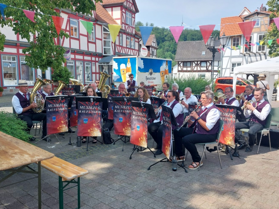 Zum Abschluss des Dorffestes in Helsa, wurden wir am 18.06. zum Spielen eines Frühschoppens engagiert. Am Sonntagvormittag durften wir den Besuchern auf dem Festplatz in der Dorfmitte mit zünftiger Blasmusik und unterhaltsamen Liedern einheizen.