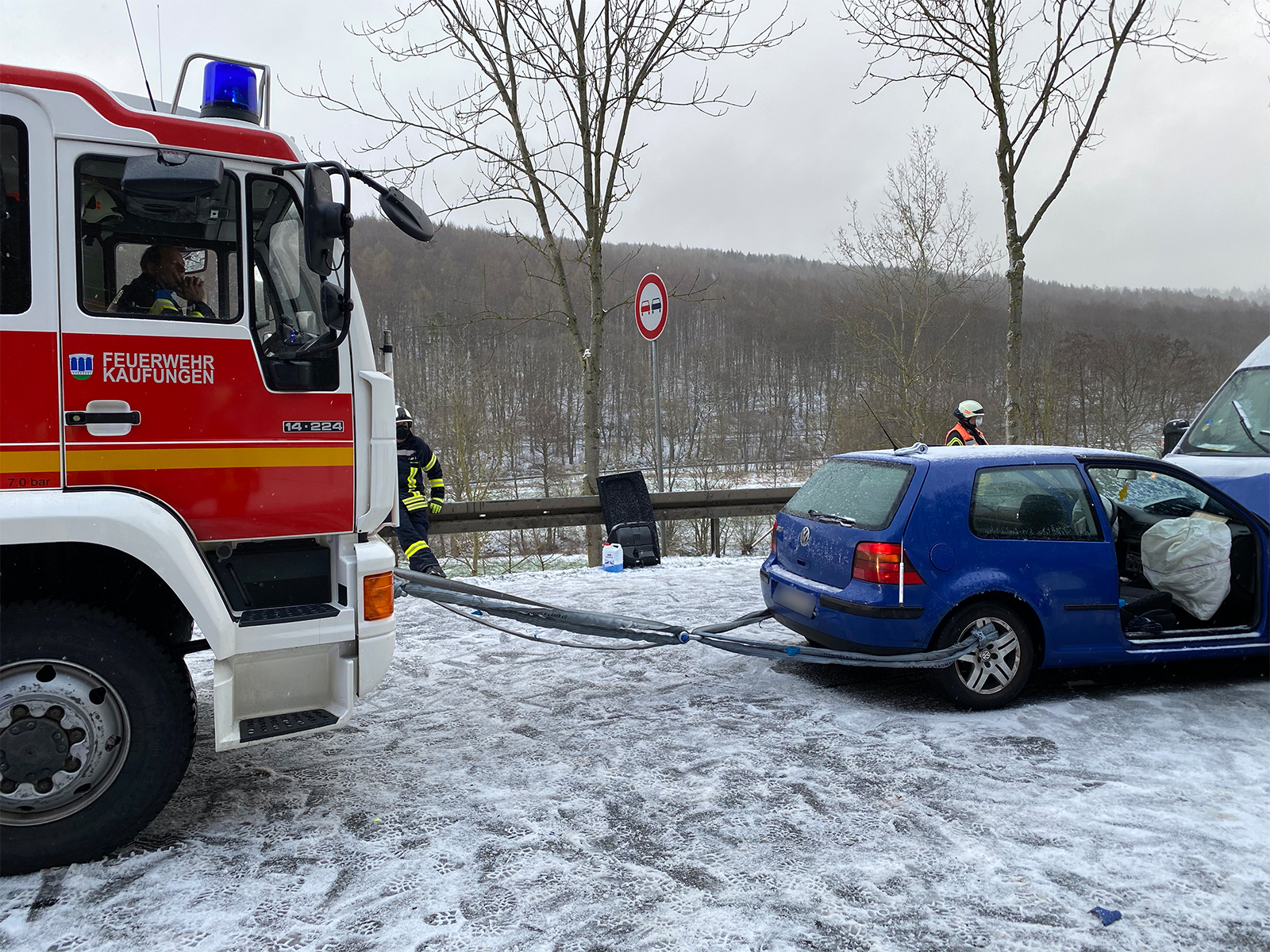 Am Dienstagmorgen wurde die Feuerwehr Kaufungen auf die B7 zwischen Kaufungen und Helsa alarmiert. Vor Ort kam ein PKW von seiner Fahrspur ab und kollidierte frontal mit einem Transporter auf der Gegenspur. Durch den Rettungsdienst kam die Rückmeldung, dass keine Person eingeklemmt ist. Daraufhin unterstützte die Feuerwehr den Rettungsdienst bei der Versorgung der Patienten und sicherte die Einsatzstelle, sowie die beiden Fahrzeuge ab.