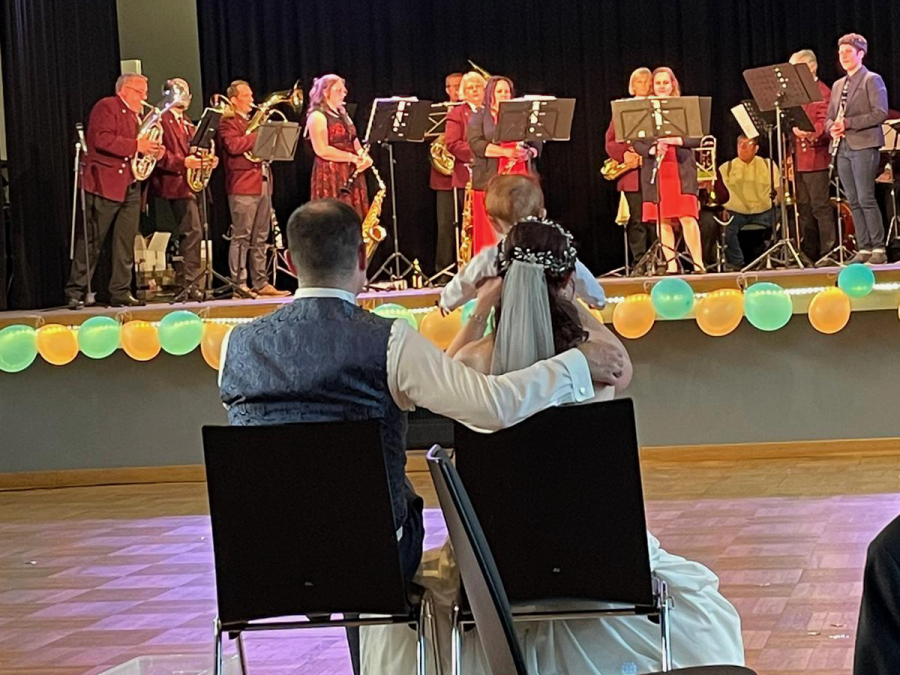 Anlässlich der Hochzeit unserer Mitglieder Nadja und Dominik Kurowski, spielten wir den beiden am Abend ihrer Hochzeitsfeier ein Ständchen mit einem Mix aus Musiktiteln, zu denen sie und ihre Gäste singen und tanzen konnten. Alles Gute noch einmal an dieser Stelle von euren Musikkameraden!