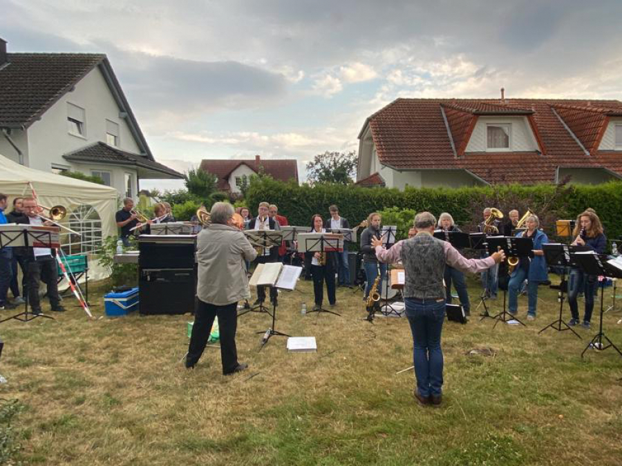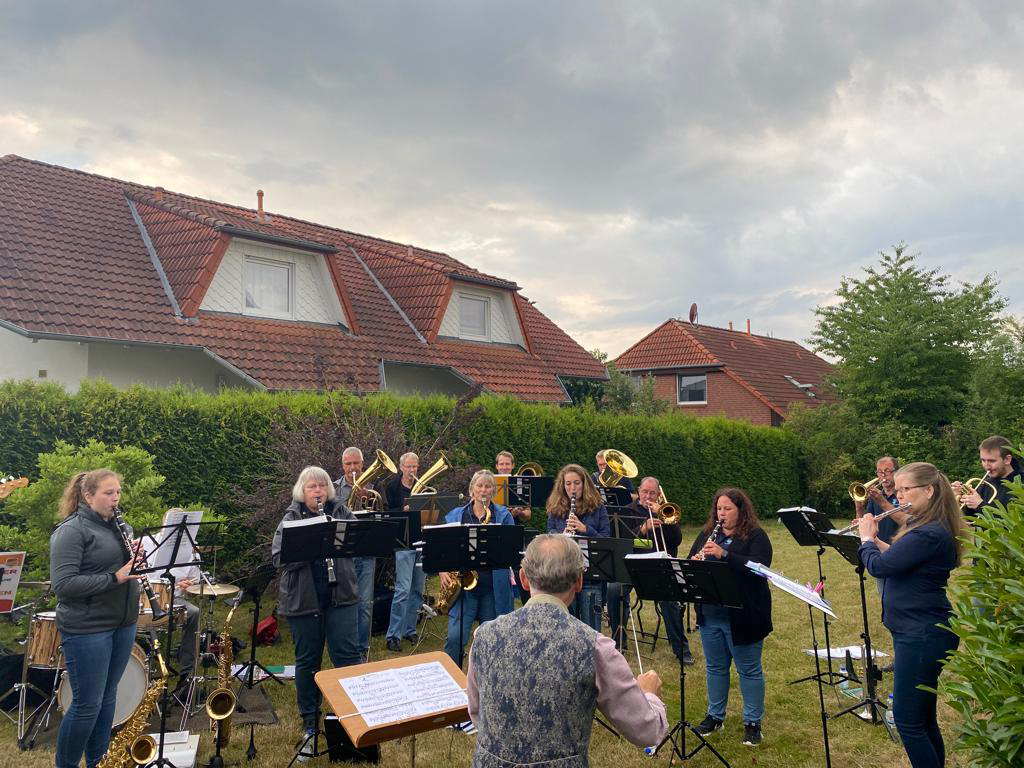 Am 21. Juli 2023 fuhren wir nach Fuldabrück, um unserem Mitglied Petra Seidel ein Ständchen zum Geburtstag zu spielen. Vom angesagten Regen wurden wir zum Glück verschont, sodass wir mit einer musikalischen Überraschung zum Geburtstag beitragen konnten. Die Musikstücke spielten wir dabei zum einen allein und zum anderen gemeinsam mit den Musikfreunden des Orchesters Lohfelden.