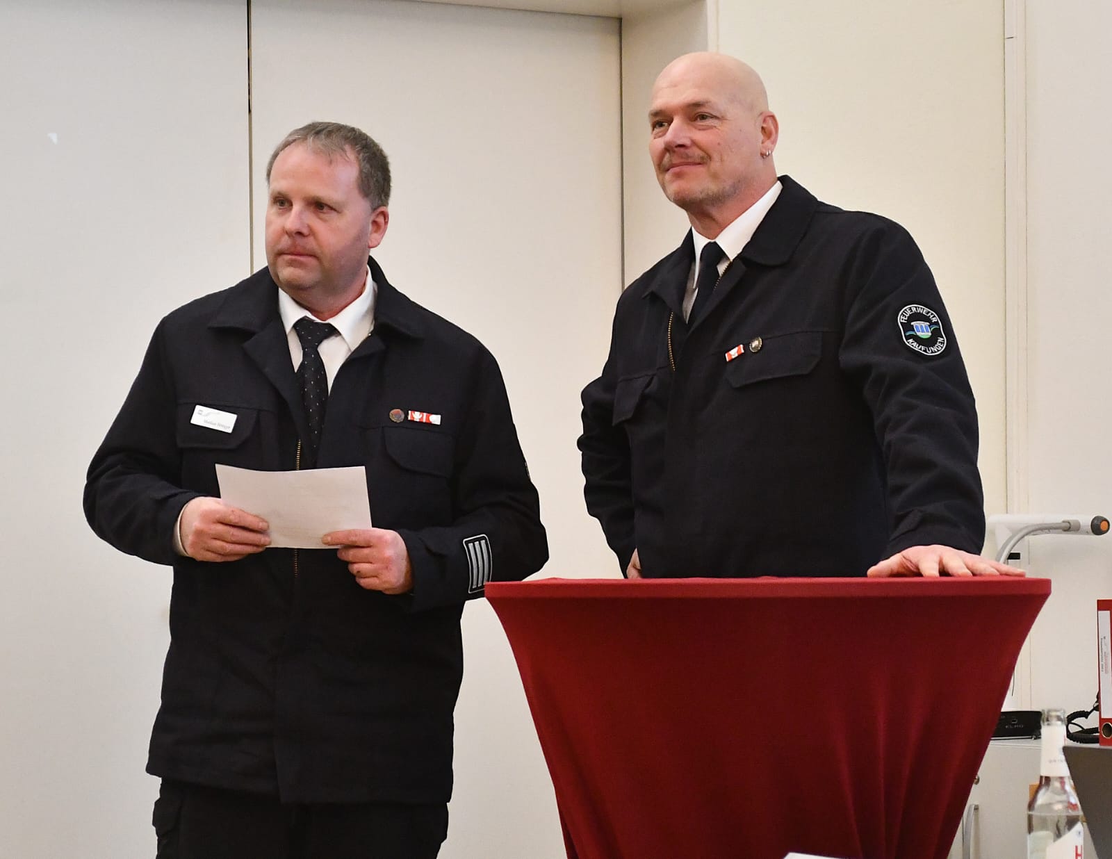 Mit der Plakette des BFV Kurhessen-Waldeck in Bronze wurde Kamerad Erik Marka für 25 Jahre und Mattias Böttger mit Silber für 40 Jahre Engagement in der aktiven Feuerwehrarbeit geehrt und ausgezeichnet.