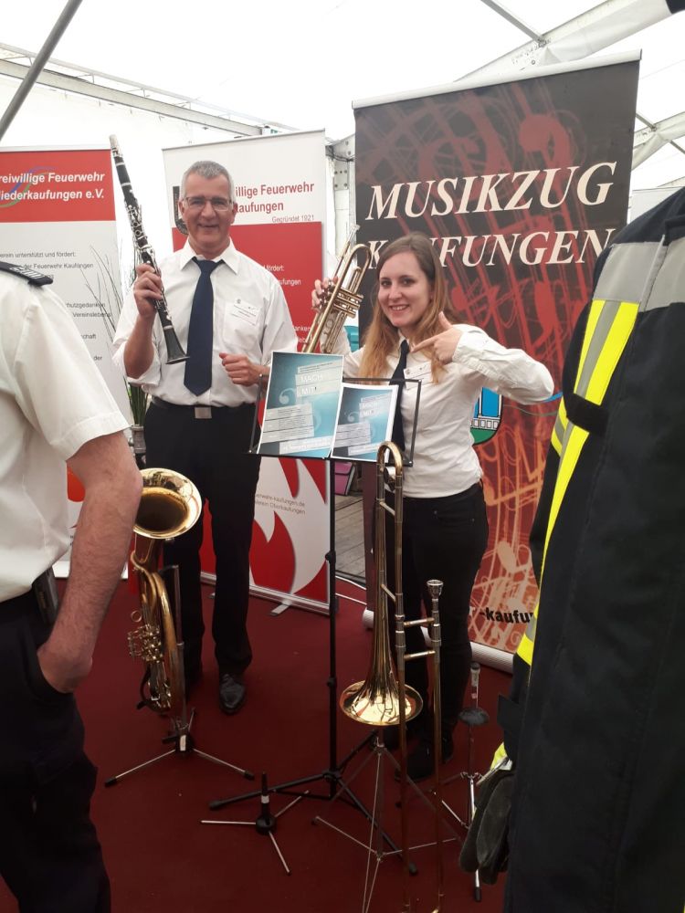 Nach 2013 und 2016 war auch 2019 die Feuerwehr Kaufungen mit ihren Abteilungen und den beiden Feuerwehrvereinen an der durch den Verkehrs-u. Gewerbeverein Kaufungen durchgeführten Gewerbeschau dabei. Als „öffentlicher Dienstleister“ sollten die umfangreiche Arbeit und die angestrebten Ziele der Feuerwehr Kaufungen der Öffentlichkeit, insbesondere den Kaufunger Besuchern der Veranstaltung vorgestellt werden. Verbunden mit der allgemeinen Info war das Werben für die Unterstützung der Tätigkeiten im aktiven Bereich der Einsatzabteilung, der wichtigen Kinder-u. Jugendarbeit ein Ziel der Teilnahme. Die Feuerwehrvereine Nieder-u. Oberkaufungen stellten ihre Vereinstätigkeiten und die damit verbundene Unterstützung der Einsatzabteilung vor. Ebenfalls war das Werben um fördernde Mitglieder Teil der Infoarbeit, das auch durch die erfreulich große Zahl der Neuanmeldungen erfolgreich war. Die Vorstände sagen Danke und laden zur Teilnahme am Vereinsleben ein. Der Musikzug der Feuerwehr Kaufungen stellte sich und seine Tätigkeiten als musikalische Abteilung der Feuerwehr Kaufungen vor und warb auf diesem Weg um Unterstützung für ihre Tätigkeiten. Durch eine gut organisierte Standbesetzung konnten die interessierten Besucher auch zu Fragen spezieller Tätigkeiten im Feuerwehrwesen fachlich informiert werden. Spezielles Thema war die Vorsorge und die Möglichkeiten des Verhaltens in einem Katastrophenfall. Hier wurden den interessierten Besuchern optisch und theoretisch Beispiele dargestellt und ein nützlicher Ratgeber des BBK (Bundesamt für Bevölkerungsschutz und Katastrophenhilfe) als Infomaterial angeboten. Die Organisatoren der Feuerwehr Kaufungen konnten ein positives Fazit für die Teilnahme an der Ausstellung ziehen. Wir danken dem Verkehrs-u. Gewerbeverein Kaufungen für die zur Verfügung gestellte Ausstellungsfläche.