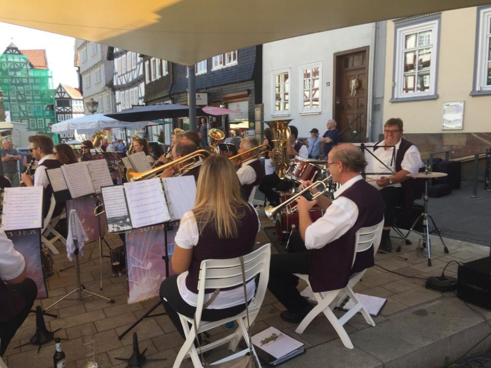 Auch dieses Jahr war der Musikzug der Feuerwehr Kaufungen im Rahmen der Fritzlarer Markttage musikalisch in das Rahmenprogramm eingebunden. Bereits zum 9. Mal waren die Musikerinnen und Musiker auf der Bühne des Marktplatzes der Fachwerkstadt für die Unterhaltung der zahlreichen Gäste der Kaffees und Besucher des Marktes engagiert worden. Wie die vorherigen Jahre war es wieder eine angenehme und unterhaltsame Spielverpflichtung.