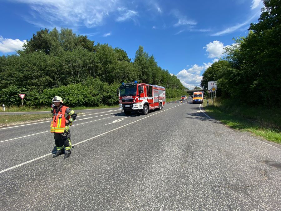 Am Samstagmittag wurde die Feuerwehr Kaufungen auf die B7, Abfahrt Lohfelden alarmiert. Im Kreuzungsbereich kam es zu einem Verkehrsunfall wodurch ein Fahrzeug in Brand geriet. Die Einsatzkräfte löschten das Fahrzeug und kühlten es mittels Schaummittel ab.