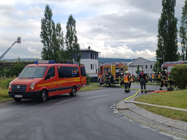 Am Mittwochabend wurde die Feuerwehr Kaufungen zu einem Gebäudebrand mit Menschenleben in Gefahr in die Sophie-Henschel-Straße nach Lohfelden alarmiert. Vor Ort unterstützten die Einsatzkräfte die Kameraden aus Lohfelden mit einem Löschangriff mittels Drehleiter und öffneten die Verschalung des Daches um weiter an die Glutnester zu gelangen. Außerdem wurden Atemschutzgeräteträger als Sicherungstrupps gestellt.