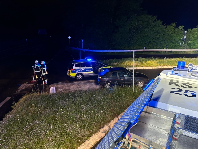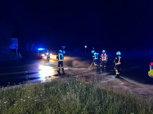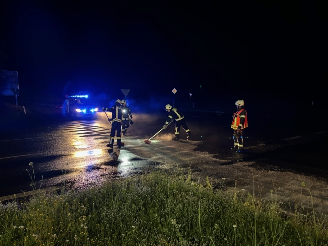 Am Mittwochabend wurde die Feuerwehr Kaufungen zu einer Ölspur auf die L3203 alarmiert. Vor Ort kam es bei einem PKW zu einem technischen defekt, worauhin dieser Diesel verloren hat. Dieser wurde mittels Bindemittel im Kreuzungsbereich abgestreut und die Fahrbahn gereinigt. Da sich die Dieselspur aber über eine Strecke von ca. 4 km hinzog, wurde eine Fachfirma hinzugezogen.