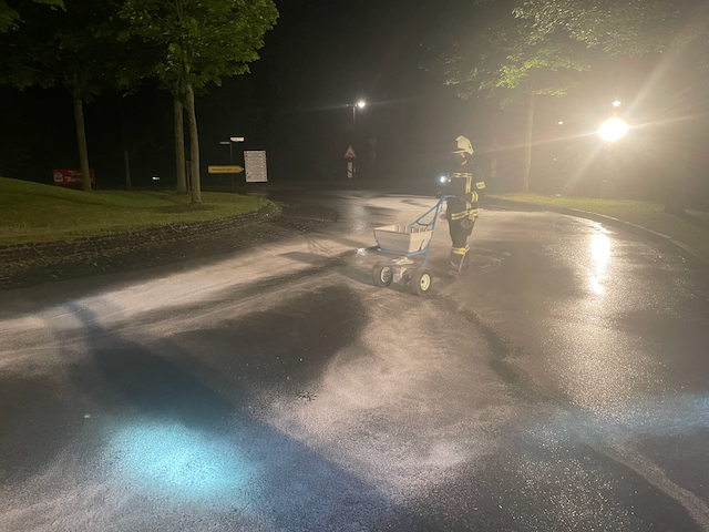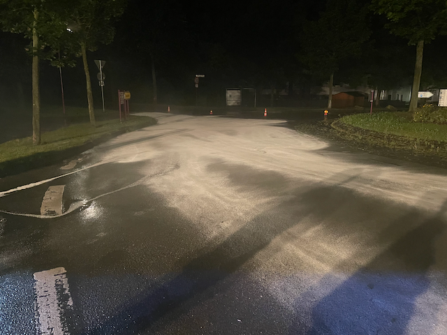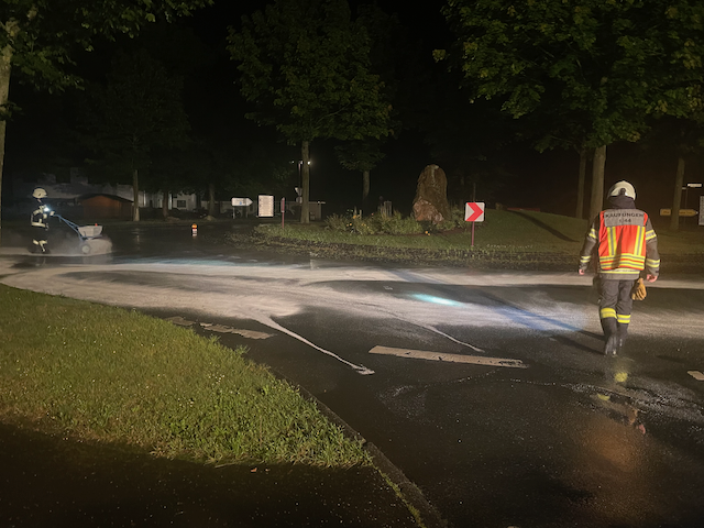 Am Samstagnacht wurde die Feuerwehr Kaufungen zu einer Ölspur nach Kaufungen alarmiert. Vor Ort befand sich eine ca. 80 m² große Ölspur, diese wurde mittels Bindemittel abgestreut und die Fahrbahn durch eine Fachfirma gereinigt.