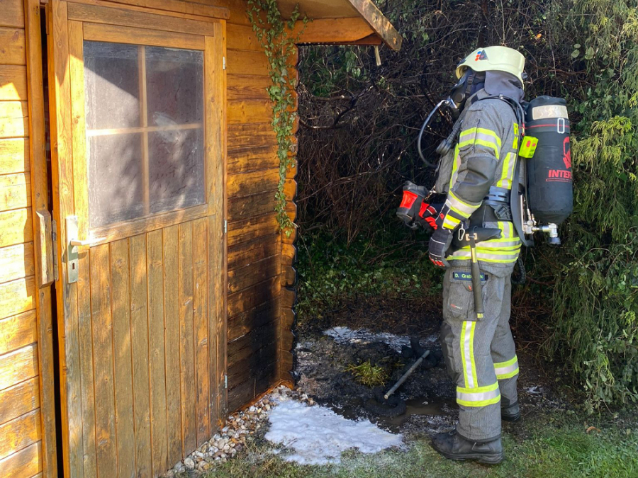 Am Montagnachmittag wurde die Feuerwehr Kaufungen in den Ortsteil Papierfabrik alarmiert. Vor Ort hatte es im Bereich einer Gartenhütte zu brennen begonnen. Als die Feuerwehr eintraf, war die Brandbekämpfung durch die Anwohner bereits mit einem Feuerlöscher eingeleitet worden. Die Feuerwehr Kaufungen löschte die letzten Glutnester mittels Schnellangriff und Netzmittel ab und kontrollierte den betroffenen Bereich mit einer Wärmebildkamera.