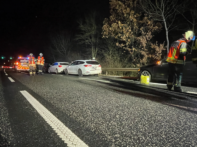 Donnerstagmorgen wurde die Feuerwehr Kaufungen zu einem Verkehrsunfall auf der B7 in Fahrtrichtung Kassel alarmiert. Vor Ort stellte sich heraus, dass mehrere Fahrzeuge in den Unfall verwickelt waren. Nach Erkundung der Einsatzstelle, konnte schnell festgestellt werden, dass sich keine Personen mehr in den Fahrzeugen befanden und diese bereits vom Rettungsdienst versorgt wurden. Die Einsatzkräfte nahmen auslaufende Betriebsstoffe auf und sicherten die Unfallstelle.