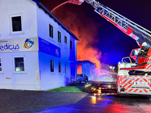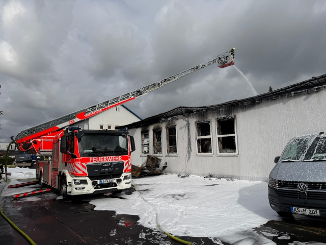 Donnerstagmorgen wurde die Feuerwehr Kaufungen zu einem Gebäudebrand in die Hannoversche Straße nach Niestetal alarmiert. Beim Eintreffen der Einsatzkräfte drang dichter schwarzer Qualm aus einem Lagerkomplex, welcher schon auf andere Gebäudeteile übergegriffen hat.