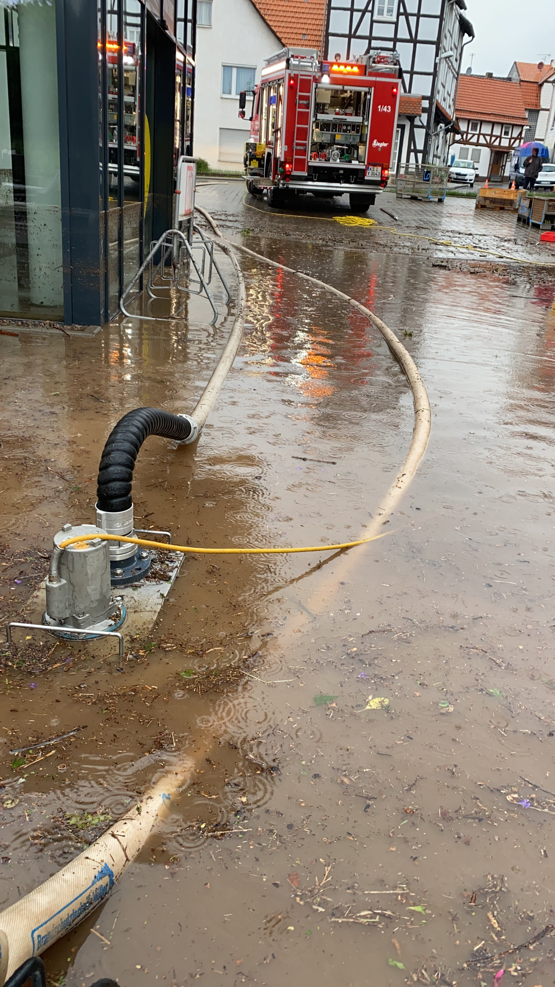 Die Feuerwehr Kaufungen kümmerte sich um Anwohner, verbaute gemeinsam mit der Feuerwehr Nieste Sandsäcke, half beim Abpumpen und unterstützte mit einer Führungskraft.