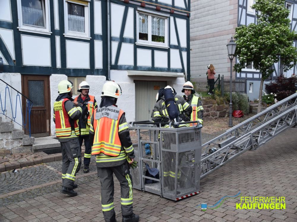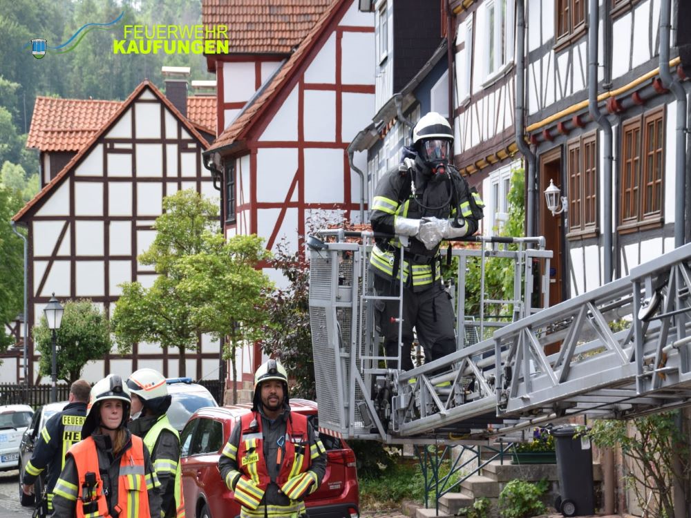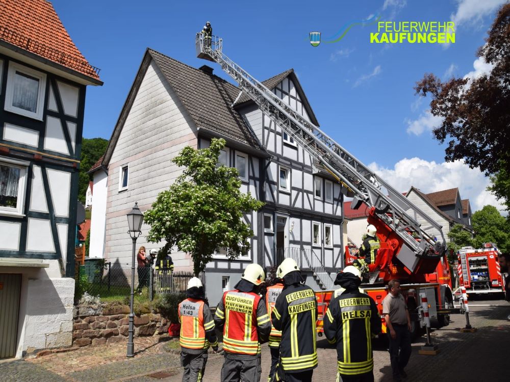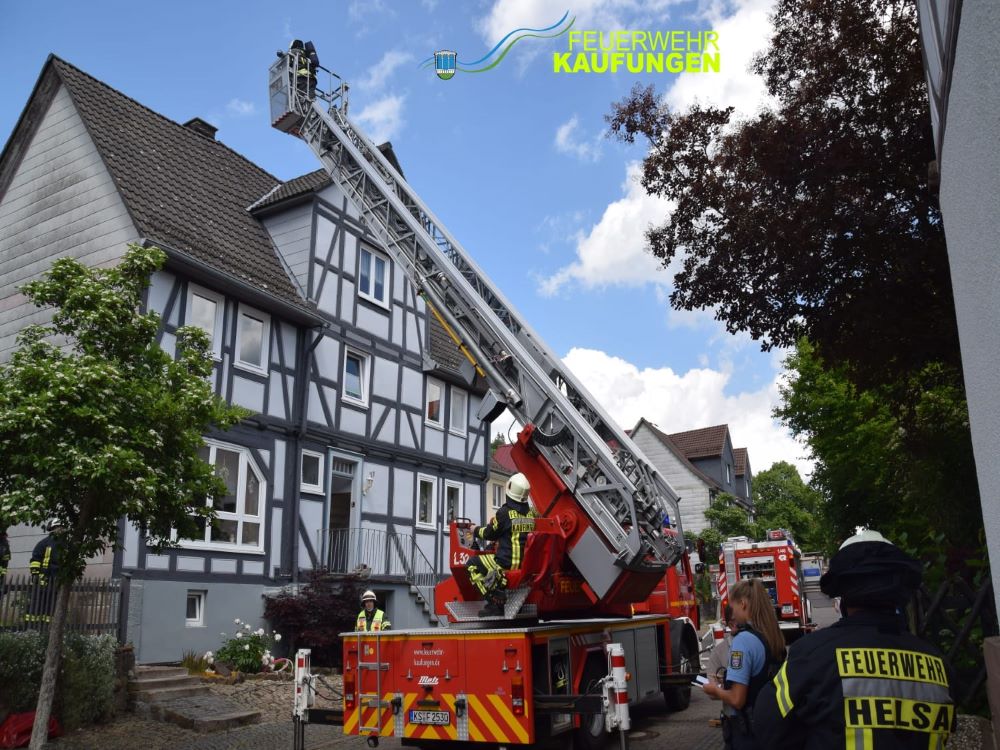 Am Freitagmittag wurde die Feuerwehr Kaufungen zur Unterstützung nach Helsa alarmiert. Vor Ort bestätigte sich die Meldung und die Kameraden unterstützten die Feuerwehr Helsa mittels Drehleiter.
