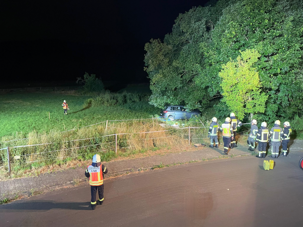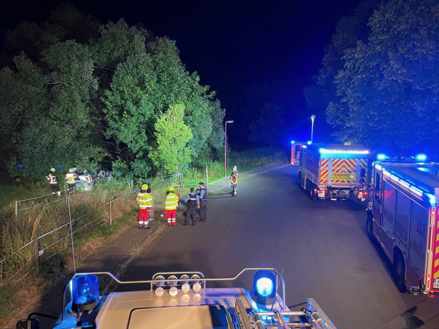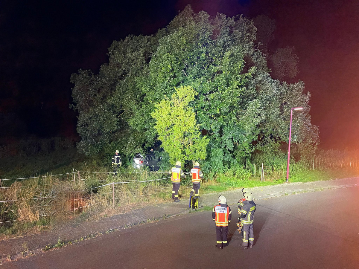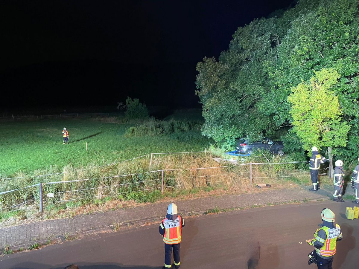 Sonntagnacht wurde die Feuerwehr Kaufungen in die Auestraße nach Niederkaufungen alarmiert. Vor Ort kam es zu einem Alleinunfall eines PKW's. Nach Ankunft an der Einsatzstelle, bestätigte sich das Einsatzstichwort glücklicherweise nicht, da die Insassen schon vom Rettungsdienst versorgt worden sind. Die Einsatzkräfte sicherten die Unfallstelle, leuchteten die Einsatzstelle aus und nahmen auslaufende Betriebsstoffe auf. Mittels maschineller Zugeinrichtung wurde das Fahrzeug in Richtung Straße gezogen, so dass der Abschleppdienst das Fahrzeug aufnehmen konnte.