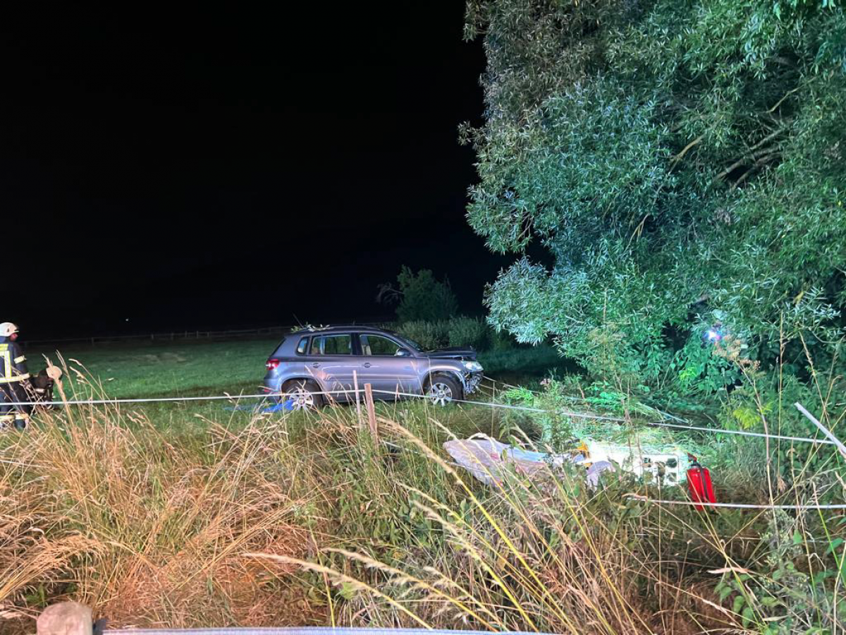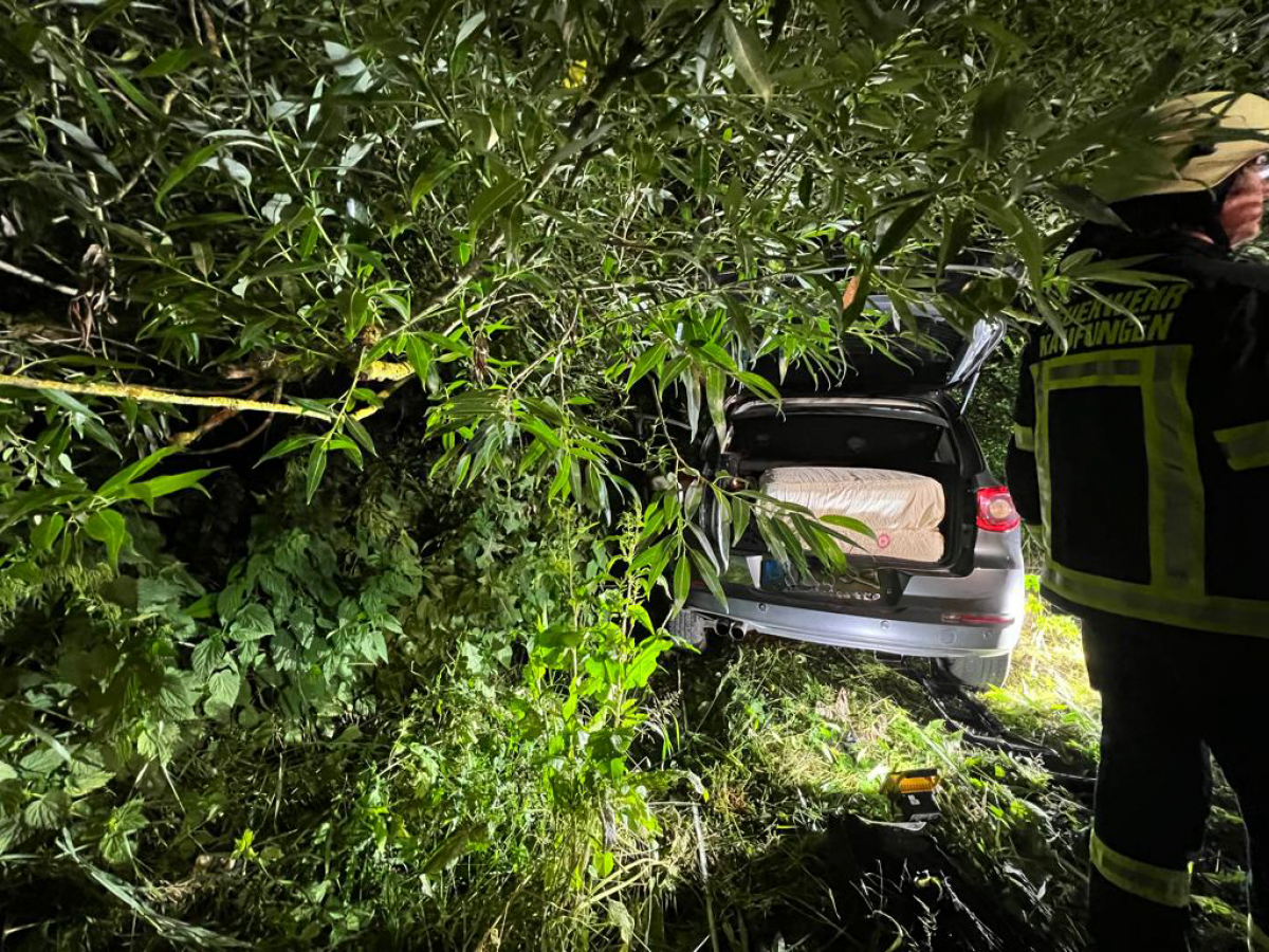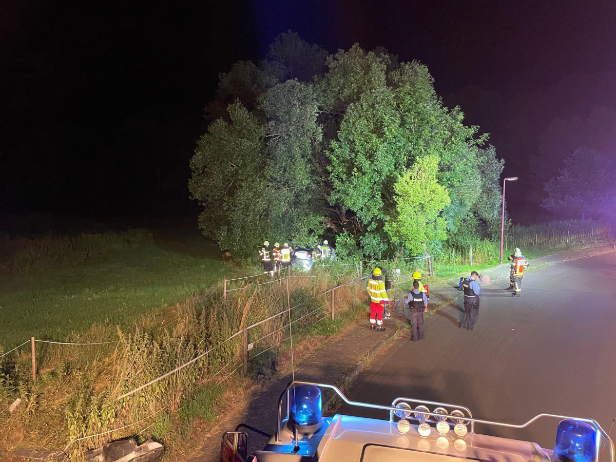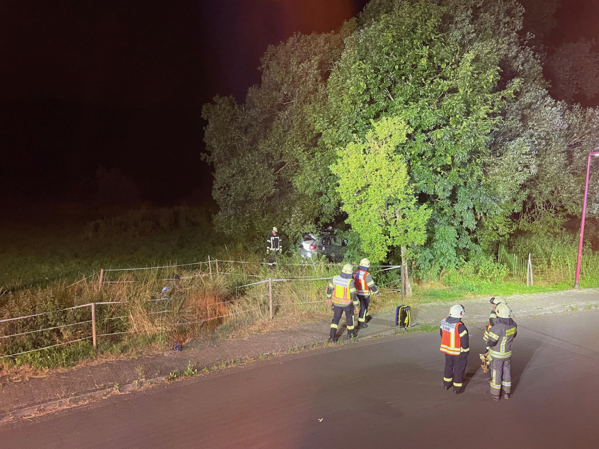 Sonntagnacht wurde die Feuerwehr Kaufungen in die Auestraße nach Niederkaufungen alarmiert. Vor Ort kam es zu einem Alleinunfall eines PKW's. Nach Ankunft an der Einsatzstelle, bestätigte sich das Einsatzstichwort glücklicherweise nicht, da die Insassen schon vom Rettungsdienst versorgt worden sind. Die Einsatzkräfte sicherten die Unfallstelle, leuchteten die Einsatzstelle aus und nahmen auslaufende Betriebsstoffe auf. Mittels maschineller Zugeinrichtung wurde das Fahrzeug in Richtung Straße gezogen, so dass der Abschleppdienst das Fahrzeug aufnehmen konnte.