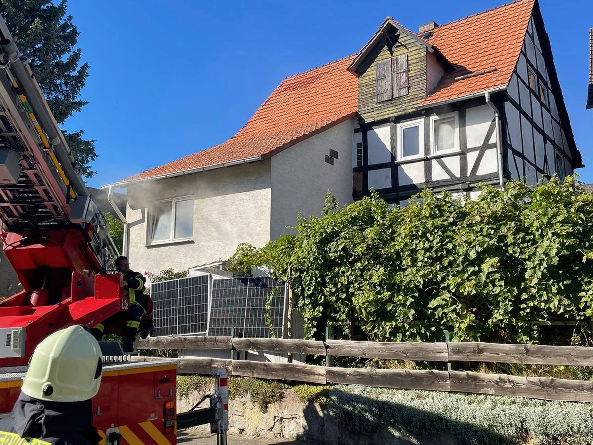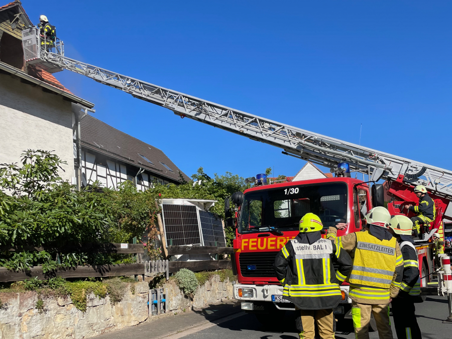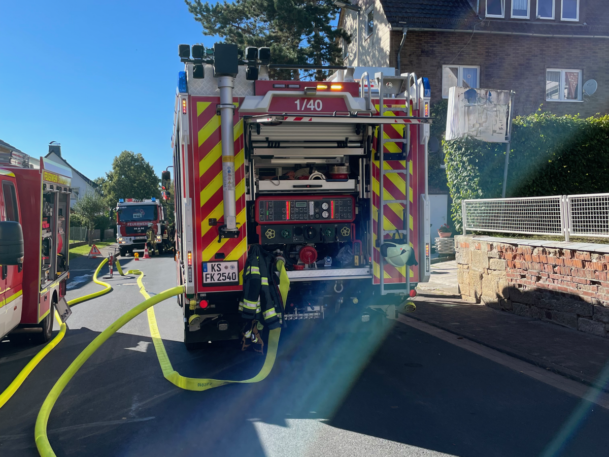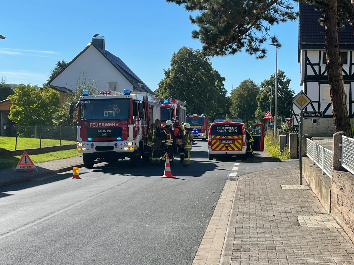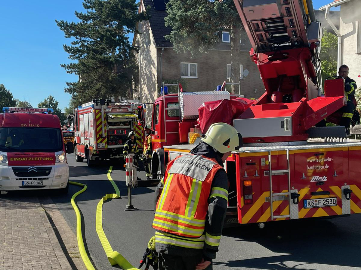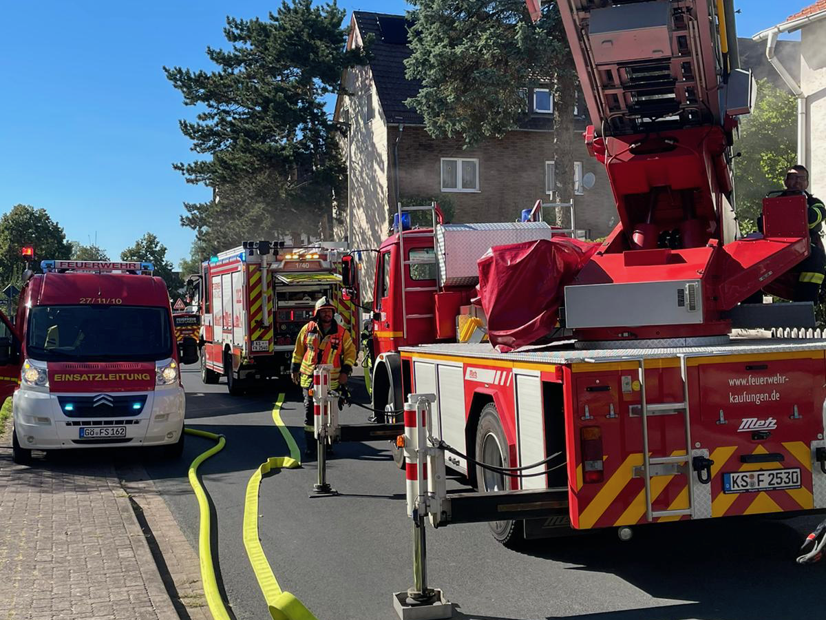 Am Dienstagnachmittag wurde die Feuerwehr Kaufungen zu einem Gebäudebrand in die Hopbachstraße nach Escherode alarmiert. Vor Ort kam es zu einem Zimmerbrand. Die Einsatzkräfte unterstützen die Kameraden aus Staufenberg mit der Drehleiter und Atemschutzgeräteträgern.
