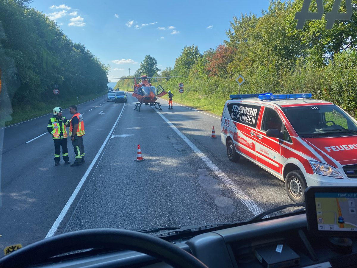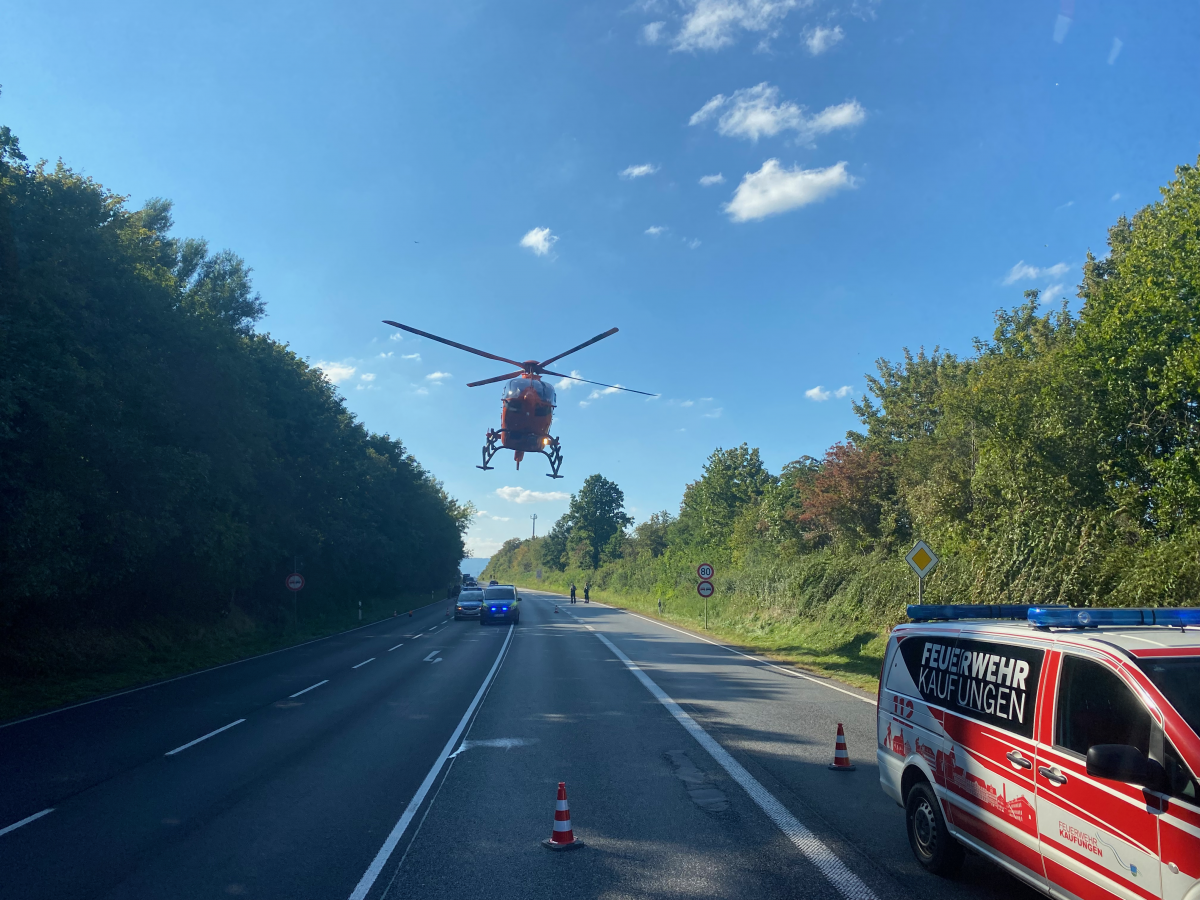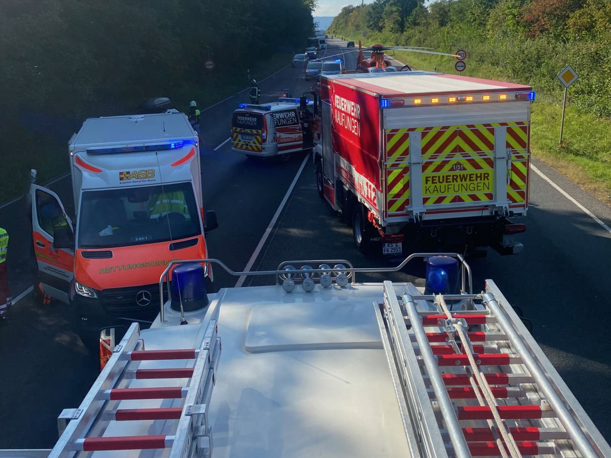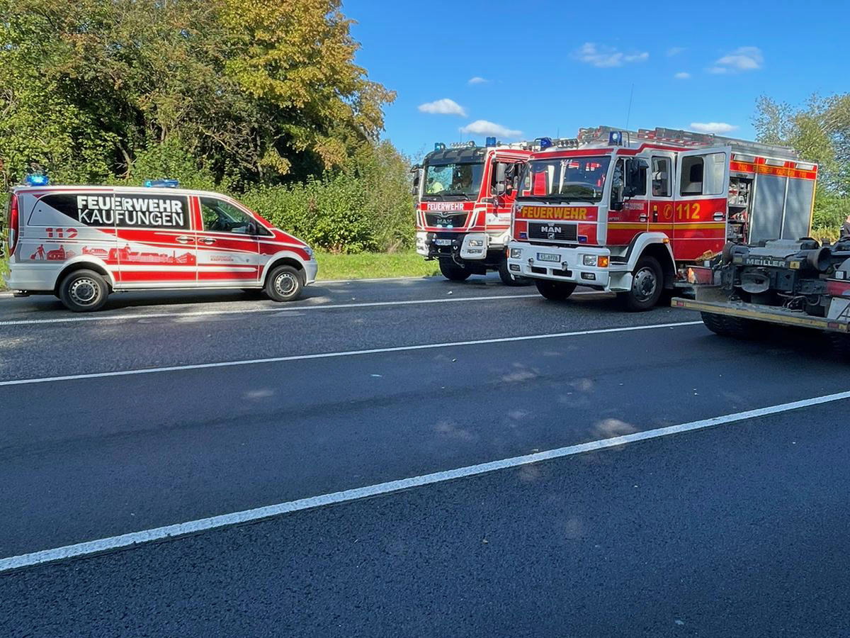Am Freitagnachmittag wurde die Feuerwehr Kaufungen zu einem Verkehrsunfall mit eingeklemmter Person auf die B7 alarmiert. Nach Erkundung konnte schnell festgestellt werden, dass keine Person im Fahrzeug eingeklemmt war. Die Einsatzkräfte unterstützten den Rettungsdienst beim retten der noch im Fahrzeug befindlichen Person, sicherten die Einsatzstelle und nahmen auslaufende Betriebsstoffe auf.
