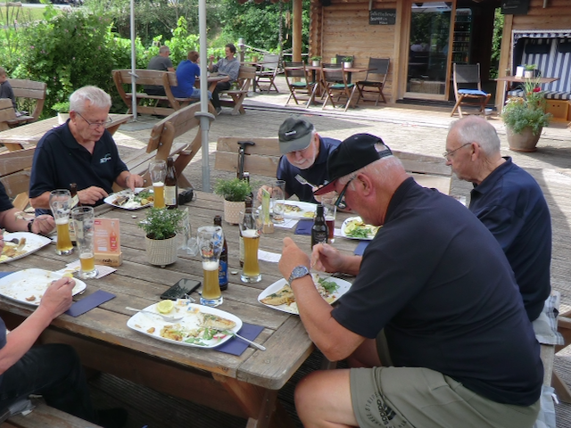12.00 Uhr Mittag wurde in dem „Fischhaus“ in Waldeck-Niederwerbe der georderte Tisch im herrlich gelegenen Freigelände besetzt.