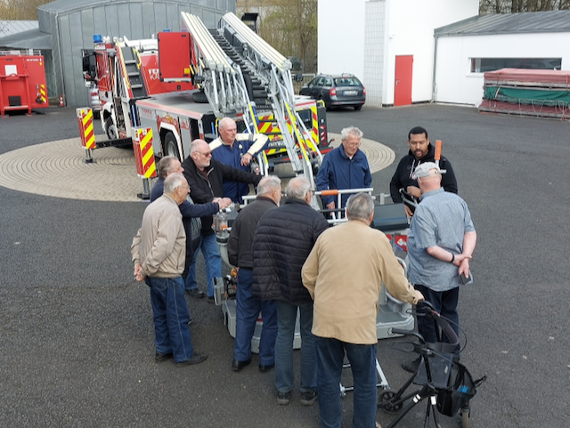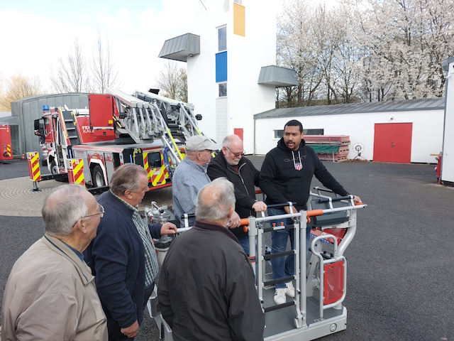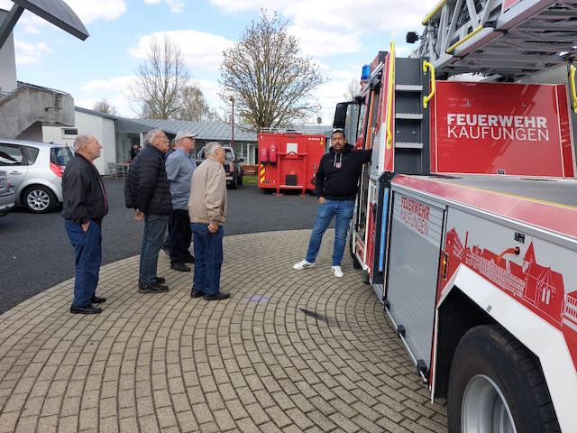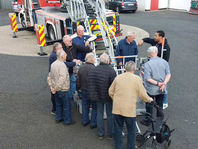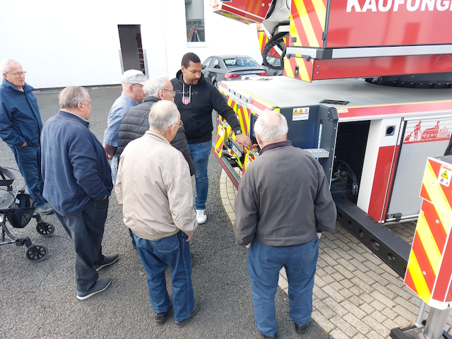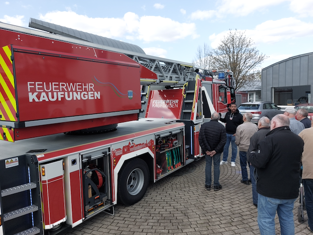 Anlässlich ihres Treffens am Dienstag, den 8.April 2025, wurde den Kameraden der Alters- und Ehrenabteilung der Feuerwehr Kaufungen die neu zu dem Kaufunger Fuhrpark der Einsatzfahrzeuge gehörente Drehleiter vorgestellt.
