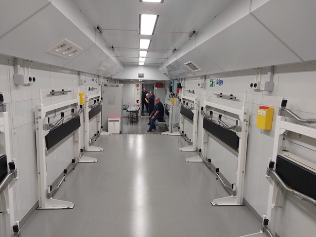 Der Transportwagen 2 ist baugleich mit dem Transportwagen 1. Durch die zweite Diesellok kann ein getrennter Abtransport von Patienten erfolgen. (Fahrtrichtung in beide Richtungen möglich-Zweirichtungszug-)