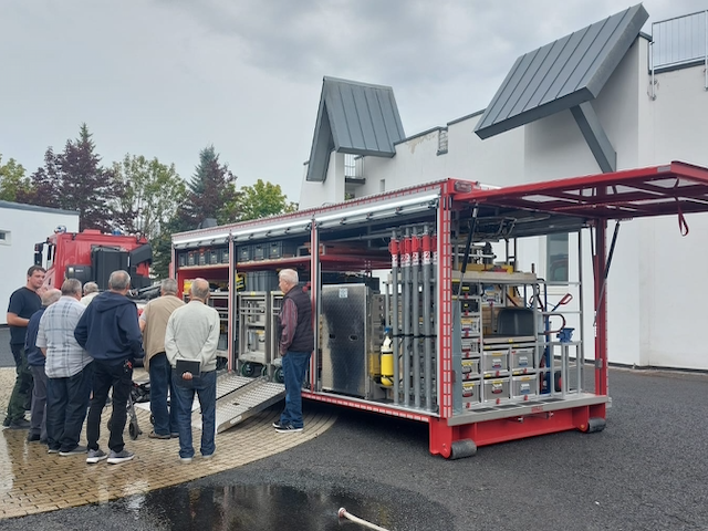 Besonderes Interesse fand der AB Rüst bei den Kameraden. Dieser Abrollbehälter ist ausgerüstet mit Technik und Gerätschaften für Einsätze bei technischen Hilfeleistungen in größeren Katastrophenfällen. Von Handwerkzeug über Beleuchtungsgerät, Stromerzeuger, Absperrmaterial füür Bauunfälle, Schneid- und Spreizgeräten zur technischen Unfallhilfe bis hin zur Bergung von Personen ist alles in diesem Container verlastet.