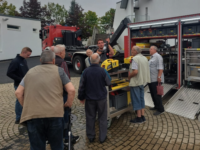Die Kameraden der Alters- und Ehrenabteilung danken Kamerad Darwin Botthof für die fachlichen und sehr informativen Einblicke in die neu im Stützpunkt Einzug gehaltene Technik.