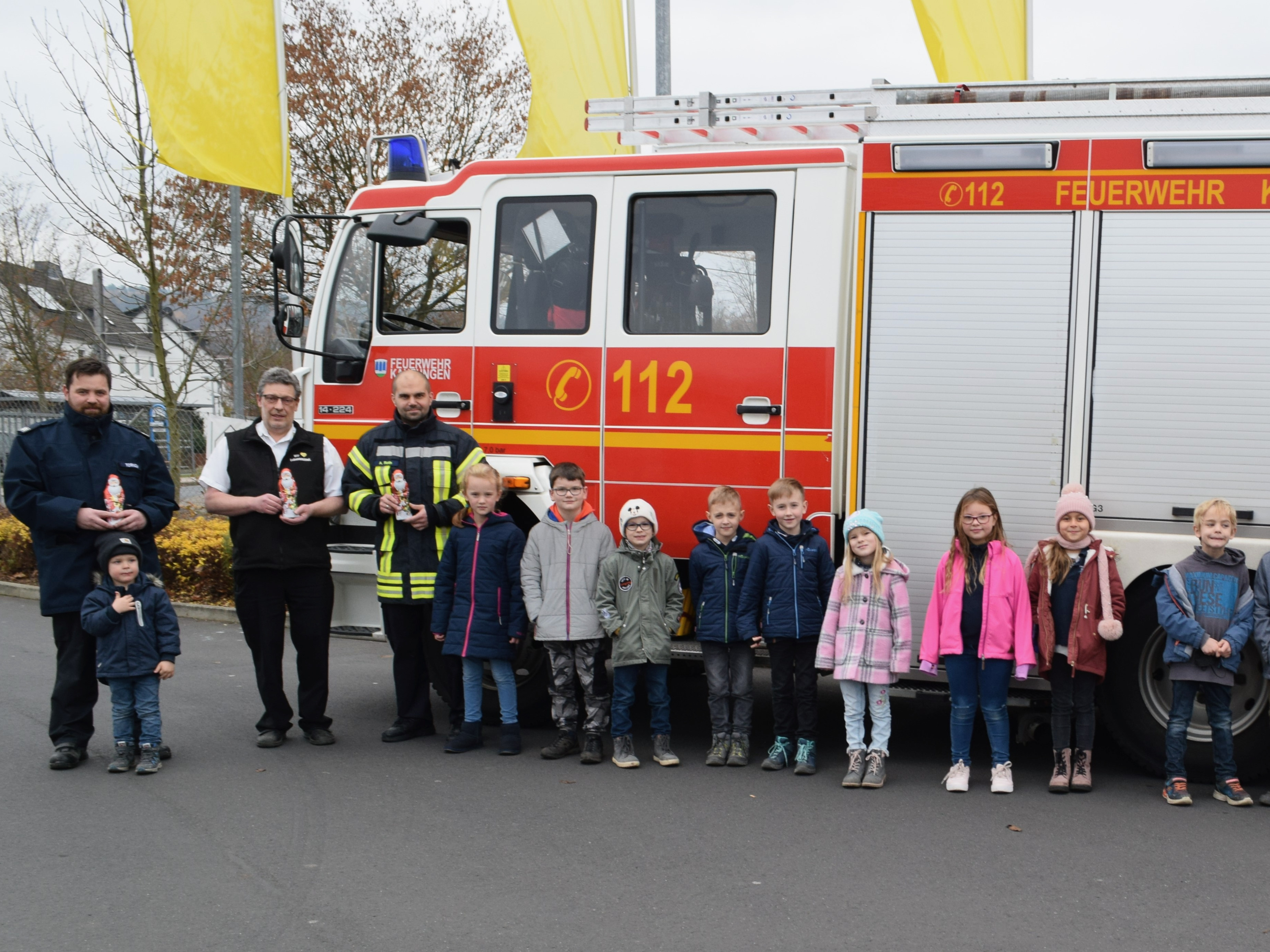 Die Kinderfeuerwehr Kaufungen bedankt sich für die „süße Spende“ bei Herrn Smit.