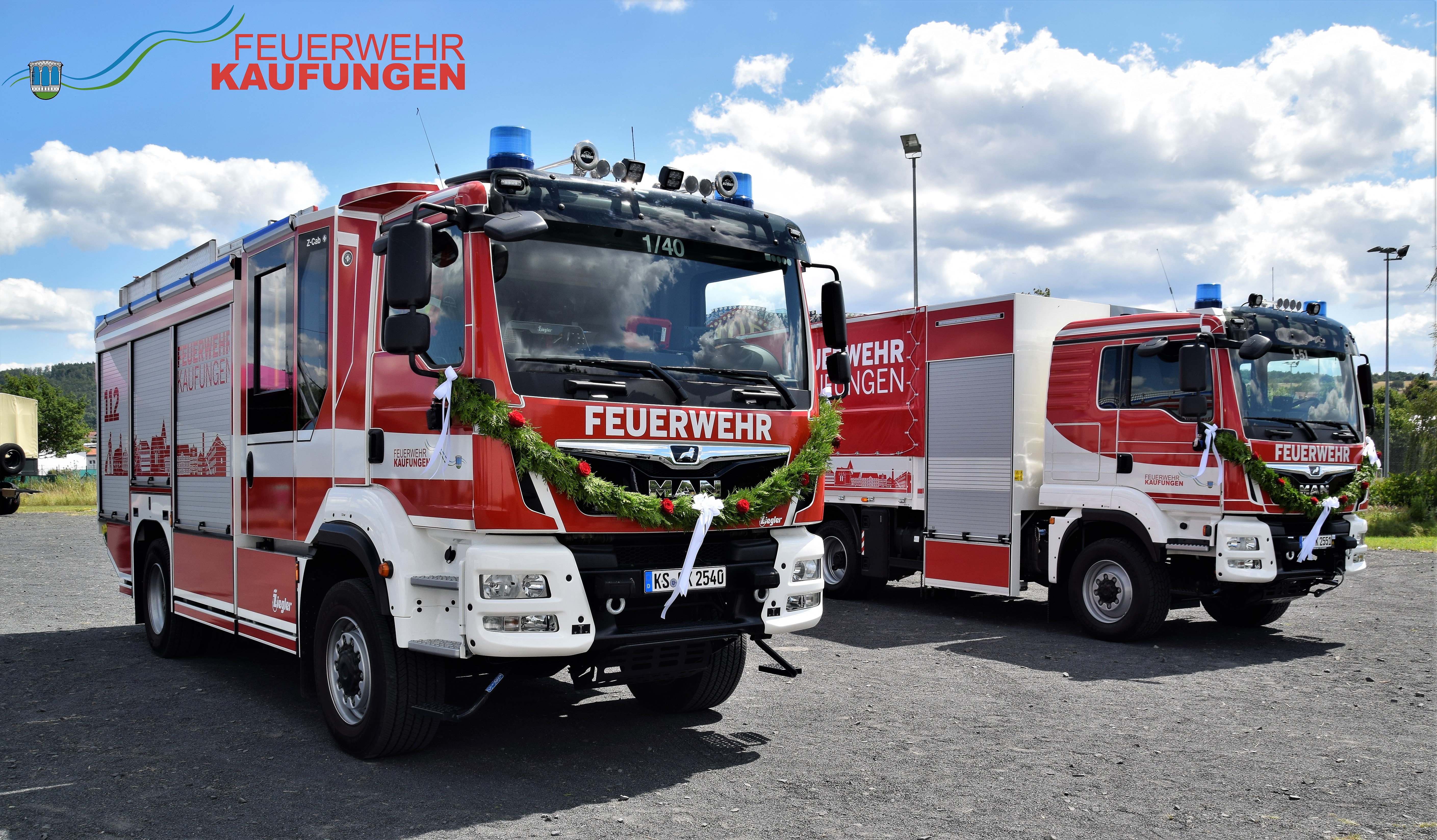 Im Rahmen der Festlichkeiten zum 50 jährigen Zusammenschluss der Ortsteile zu der Großgemeinde Kaufungen wurde am Samstag, den 16. Juli 2022 in einem kleinen Festakt die offizielle Übergabe, zwei neu beschaffter Einsatzfahrzeuge der Feuerwehr Kaufungen auf dem Festplatz vollzogen.