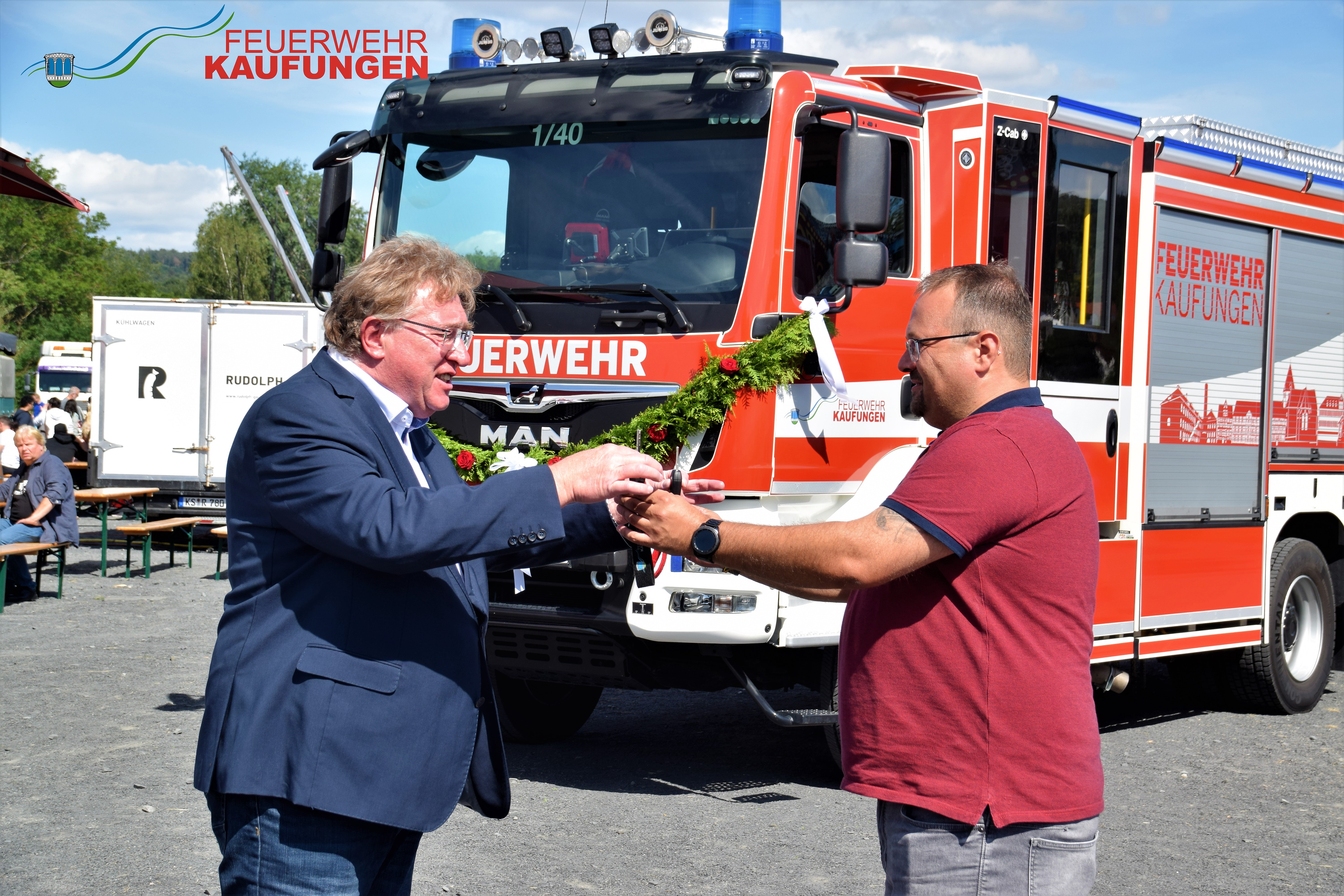 Übergeben wurden die Schlüssel nicht wie üblich an ein Mitglied der Einsatzabteilung sondern an einen Bürger der Gemeinde Kaufungen, stellvertretend für die Kaufunger Bevölkerung.