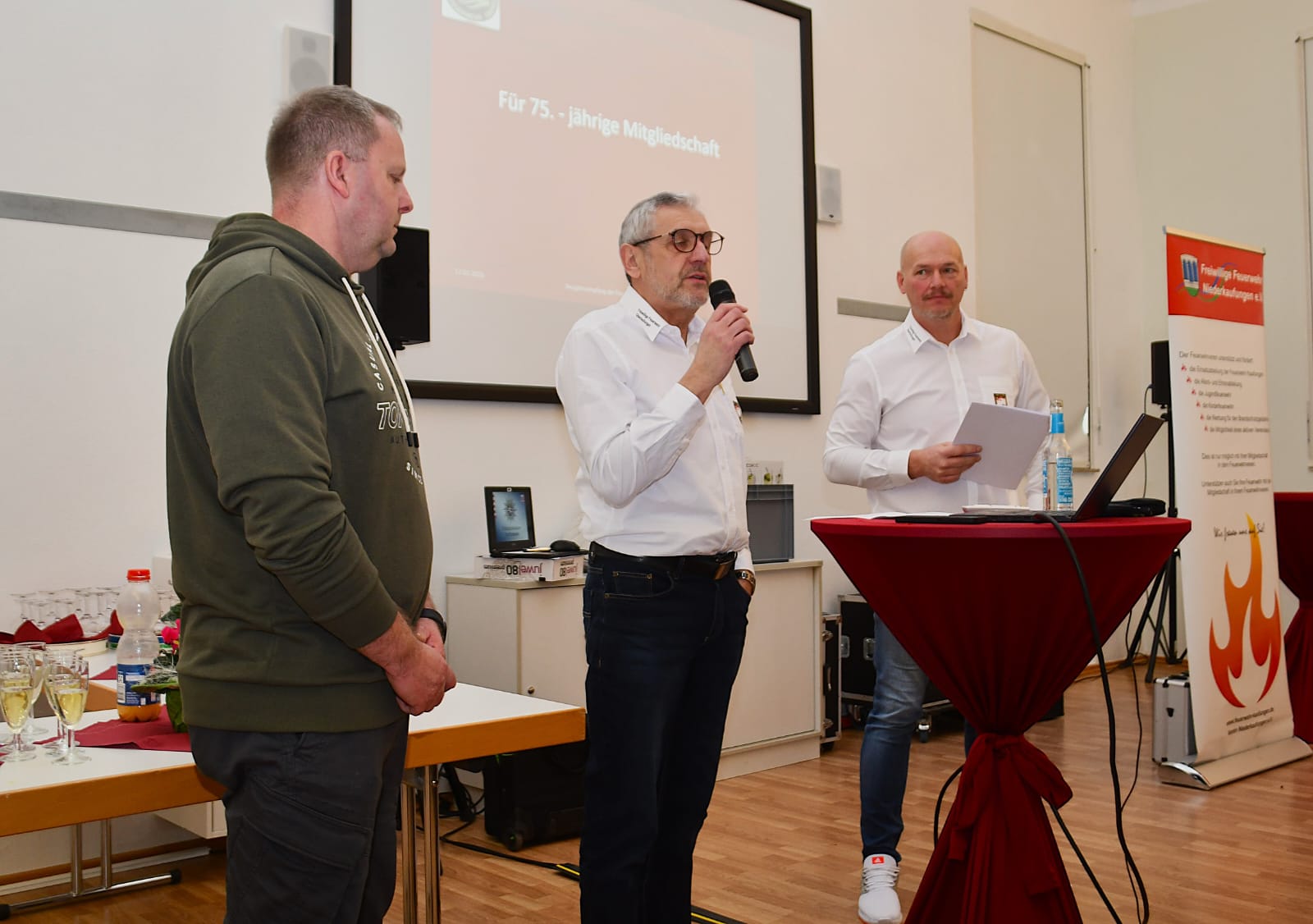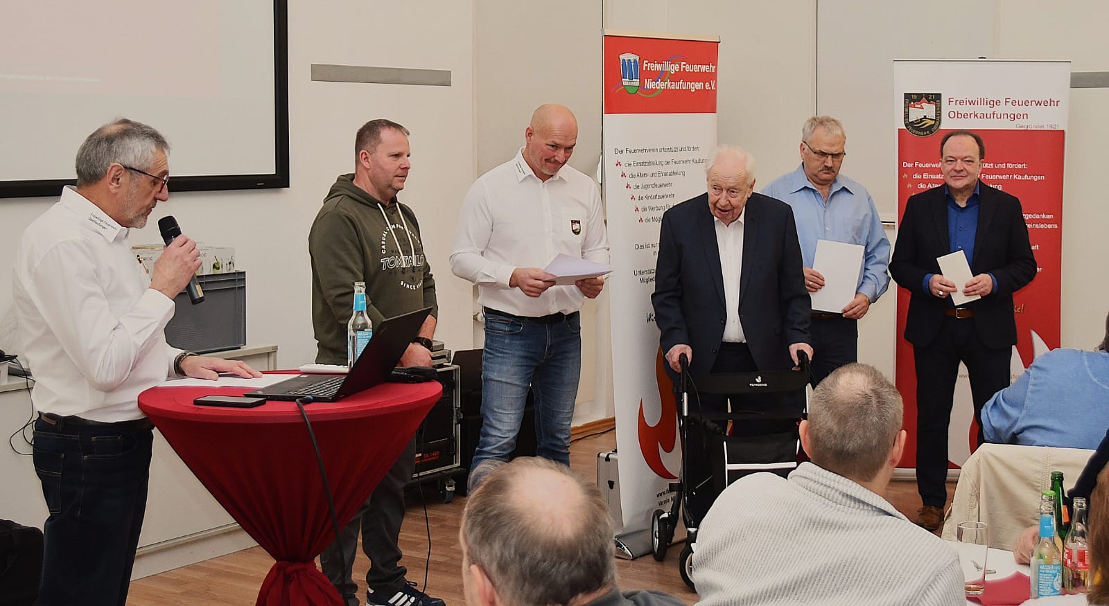 Höhepunkt der Veranstaltung war die Ehrung des Kameraden für 75 Jahre Mitgliedschaft und aktive Vereinstätigkeit im Feuerwehrverein Oberkaufungen.