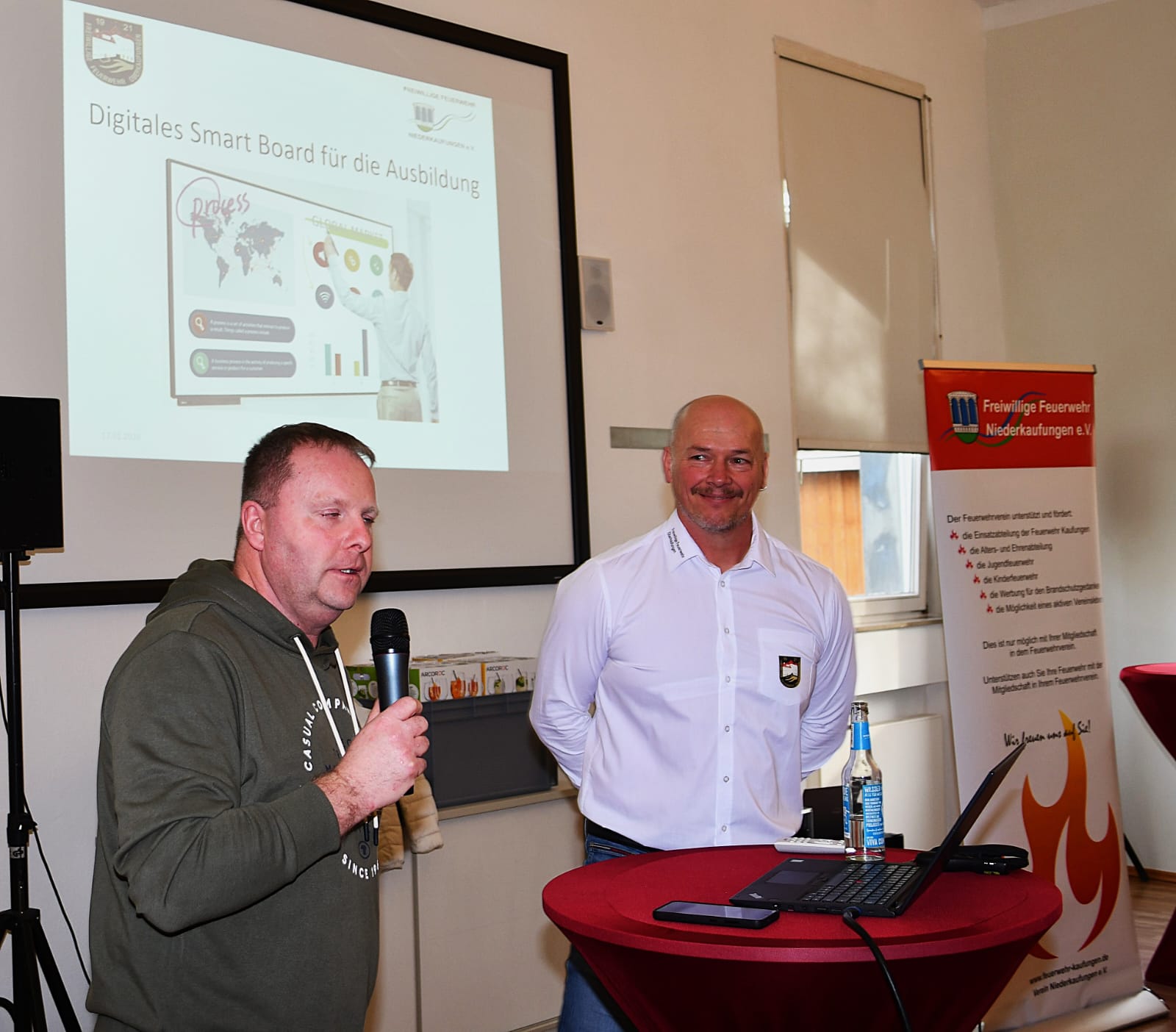 Für die diesjährige Unterstützung der Einsatzabteilung kamen die Vorstände einer Bitte der Wehrführung nach. Aus den Vereinsmitteln wird die Finanzierung eines digitalen Smartboards im Wert von 5.000,-- Euro für die Ausbildung übernommen.