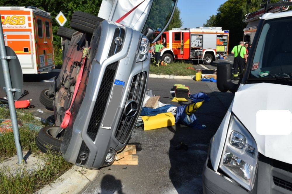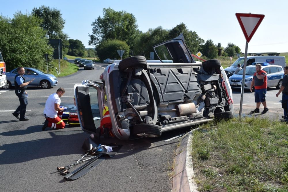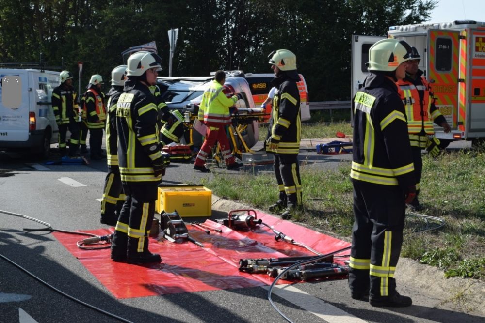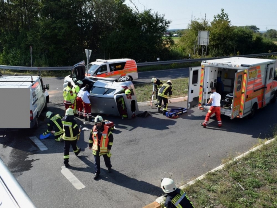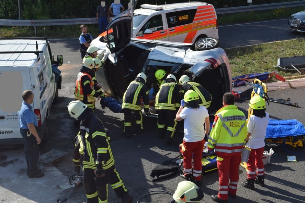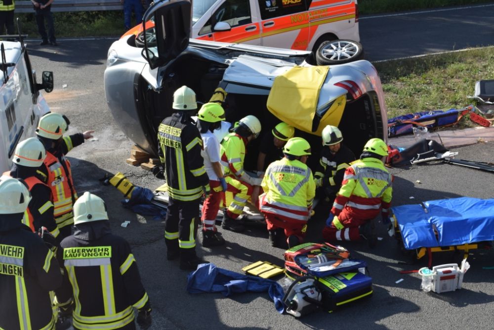 Am Donnerstagnachmittag wurde die Feuerwehr Kaufungen zu einem Verkehrsunfall im Kreuzungsbereich der Abfahrt der B7 Richtung Vollmarshausen alarmiert. Vor Ort waren ein Van und ein Pkw kollidiert. Der Fahrer des PKW der durch den Aufprall auf der Seite lag, wurde im Fahrzeug schwer verletzt. Um Ihn schonend aus dem Pkw retten zu können, wurde in Absprache mit dem Notarzt vor Ort das Dach durch die Feuerwehr abgeklappt. Im Anschluss unterstützte die Feuerwehr bei der schonenden Rettung und streute auslaufende Betriebsstoffe ab.