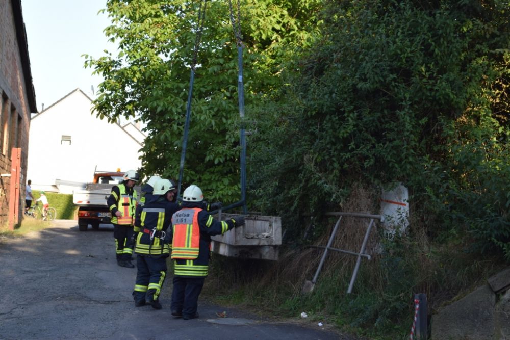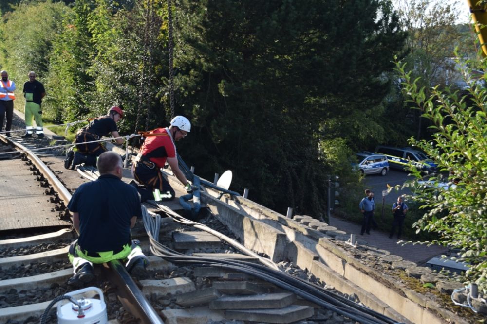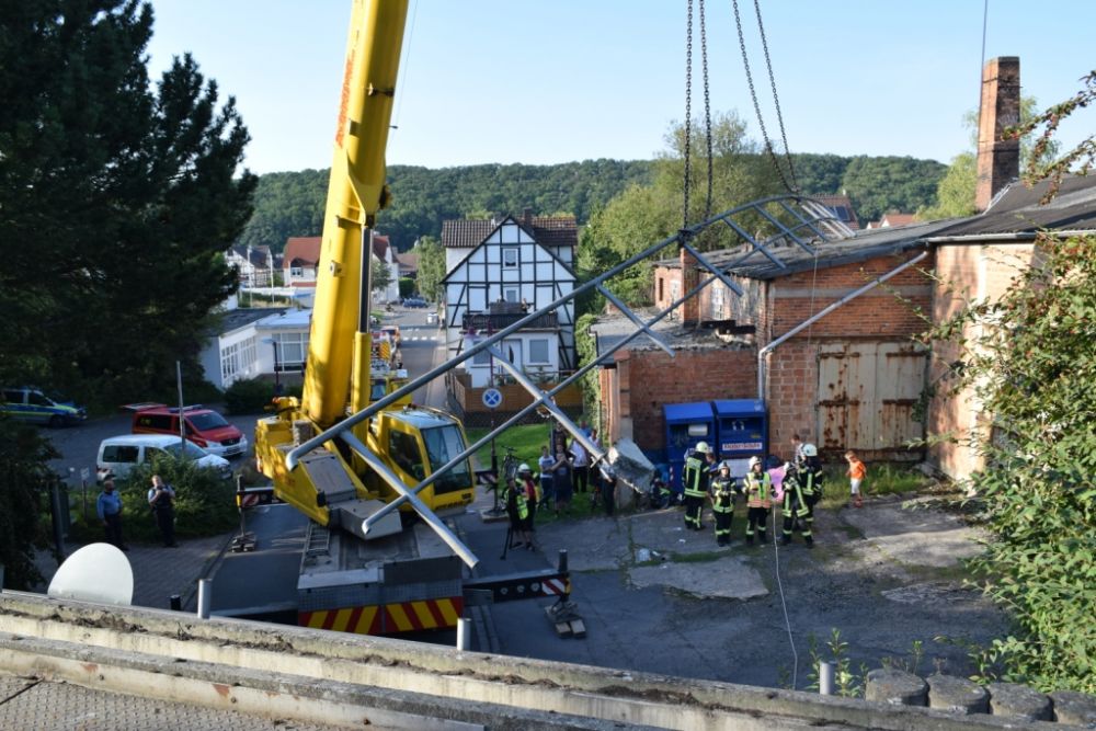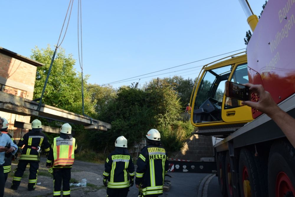 Mit Unterstützung eines ortsansässigen Bergungsunternehmens wurden einige Betonteile der Brücke, die herunterzustürzen drohten, demontiert.